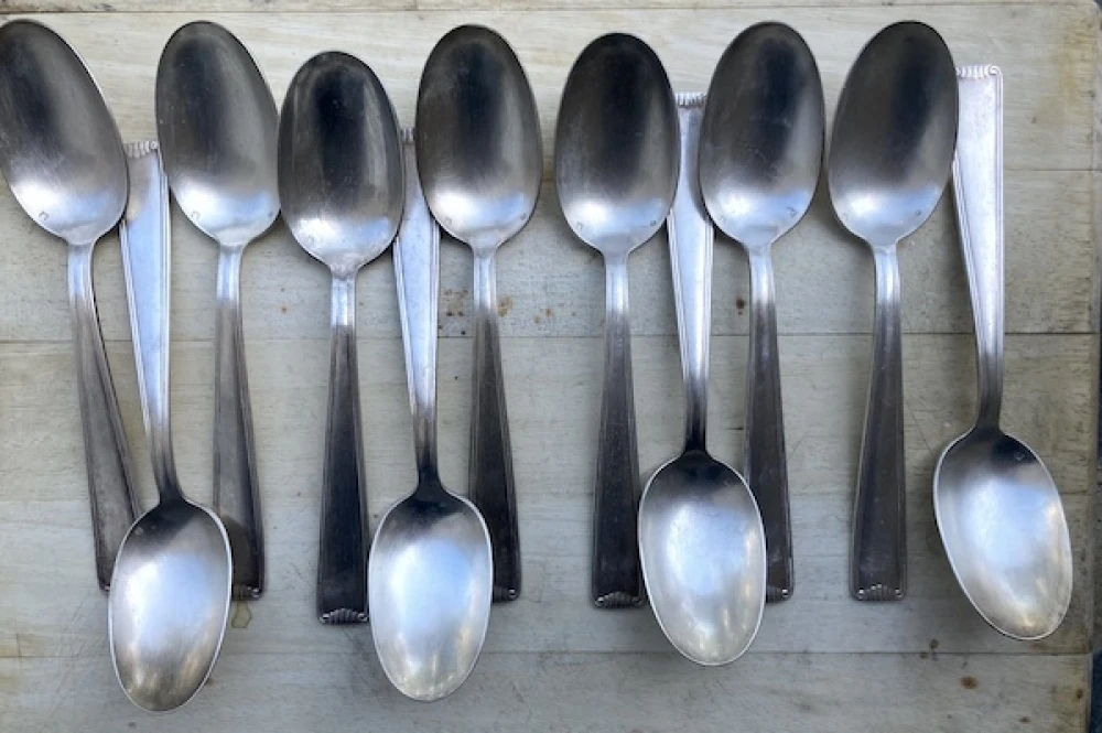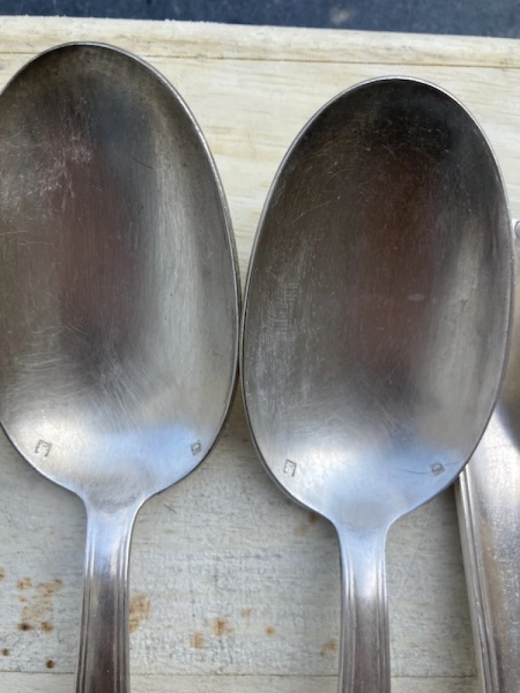 Ensemble de 11 cuillères à soupe en métal argenté blanc avec poinçon d’argenture 100.