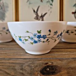 3 Bols Arcopal Veronica Myosotis (fleurs Bleues) Vintage En Opaline Thé, Café Ou Petit Cacao