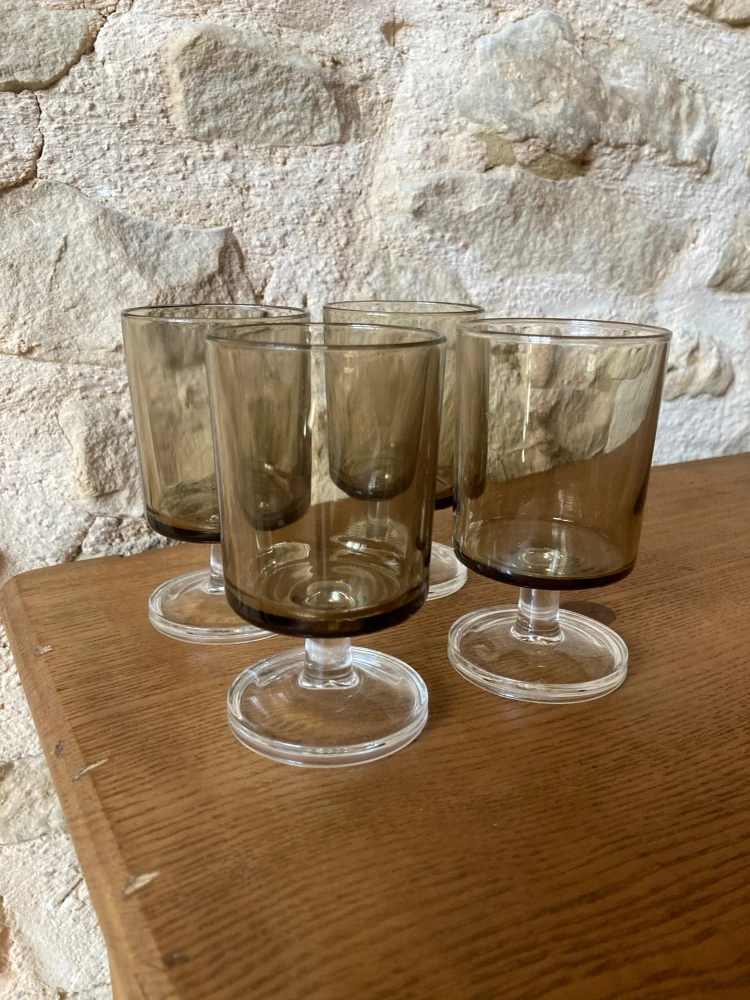 Décidément on aime les tables scandinaves, leur design et leurs lignes intemporelles… 4 verres à vin blanc couleur fumée. Aucun défaut.