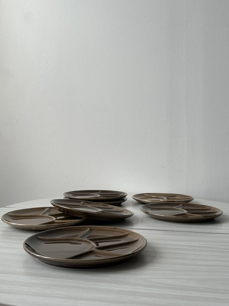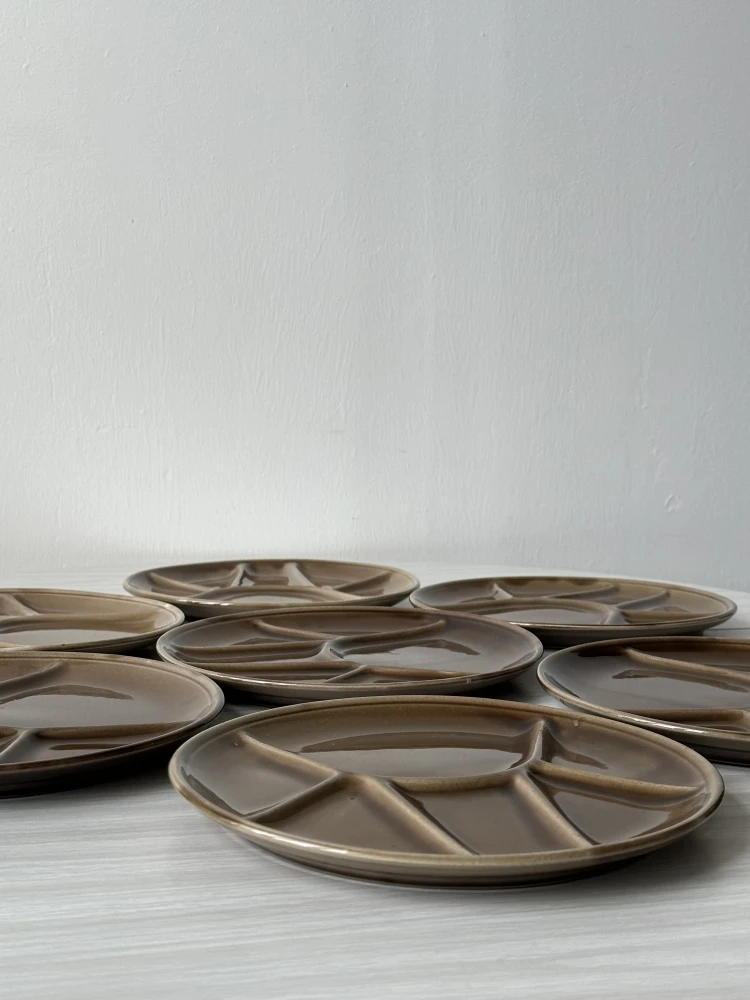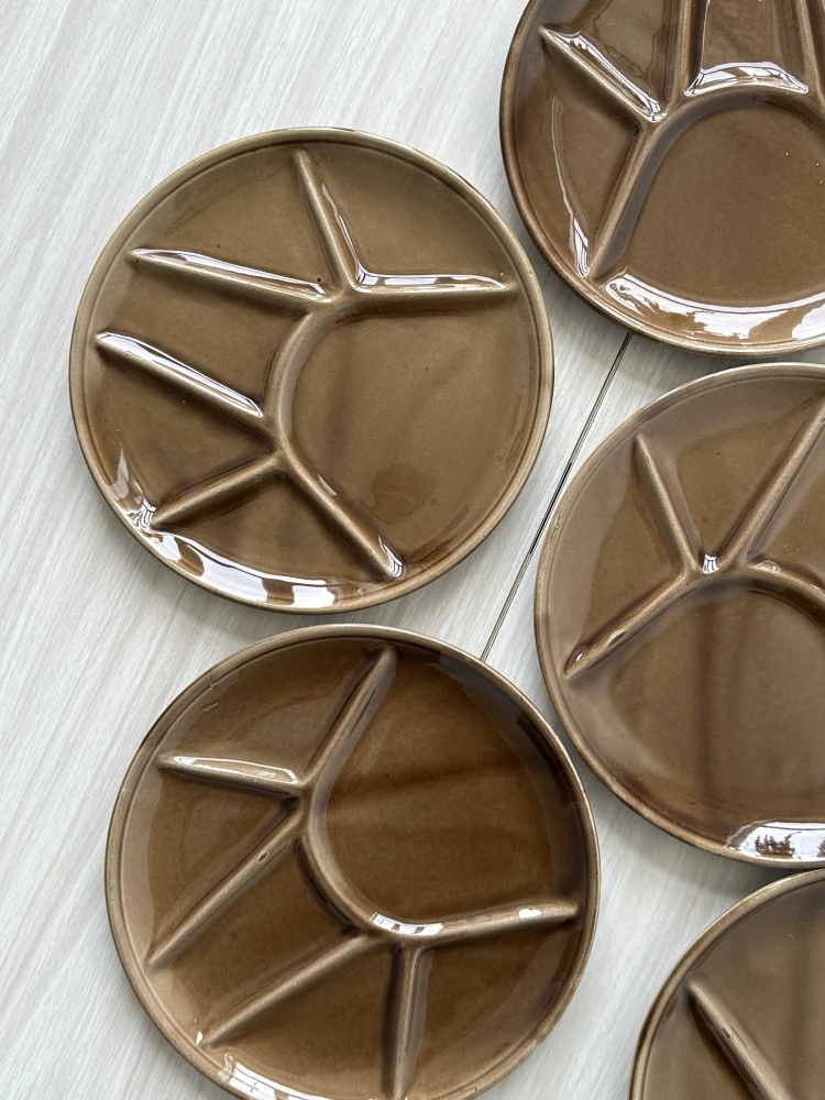 7 assiettes à fondue – assiette à compartiments marron glacé