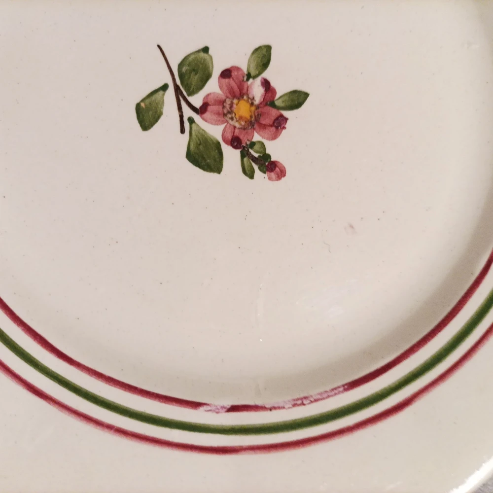Lot de 8 assiettes plates en faïence de Sarreguemines modèle Armelle, peintes à la main