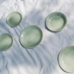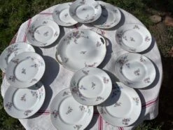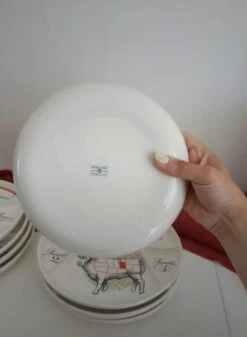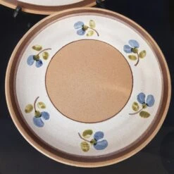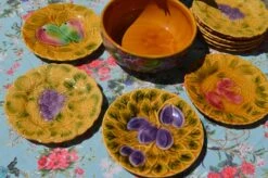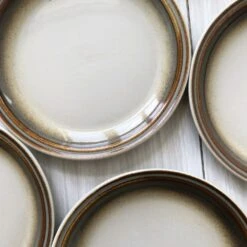 Lot De 6 Assiettes Creuses En Céramique Ancienne Liseré Jaune, Marron Et Gris. Assiettes