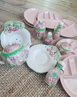 Duo Bol Passoire Et Assiette En Céramique Barbotine Décors Cerises Plats, Saladiers Et Coupelles