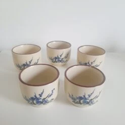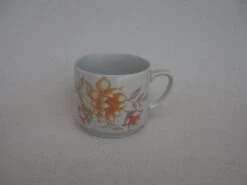 Lot De 2 Tasses En Faiences MONOPOLY 65 Décor Floral Automnal Orange Brun Thé, Café Ou Petit Cacao