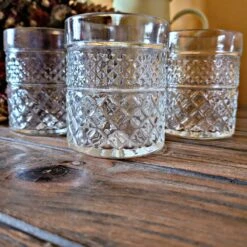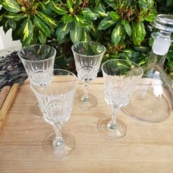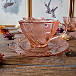 4 Tasses Vintage Vereco Beau Rivage En Verre Rose Avec Soucoupes Thé, Café Ou Petit Cacao