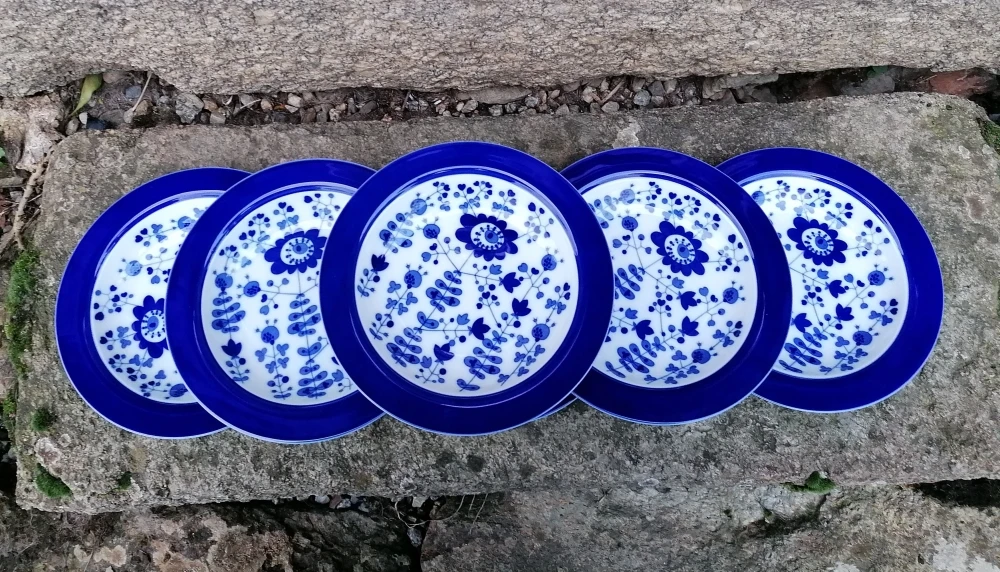 Ensemble de 6 assiettes creuses en porcelaine Thomas Germany. Décor floral bleu.