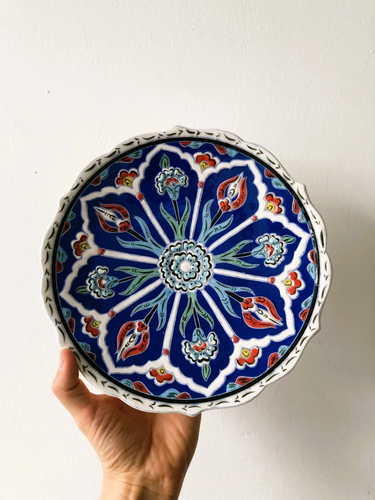 Authentique et magnifique assiette florale turque – KUTAHYA 1998 – Excellent état – Motif en relief