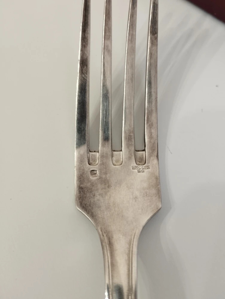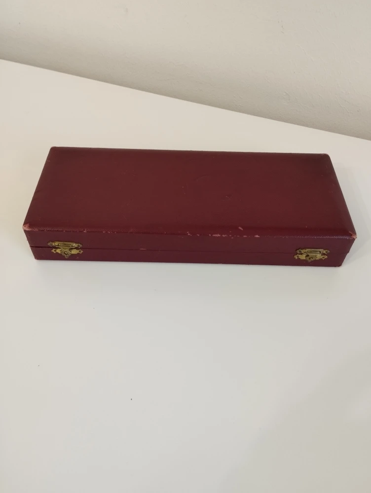 Etat : article d’occasion car les couverts sont recouverts de la patine liée au temps. Quant au boîtier, il a des traces d’usures.