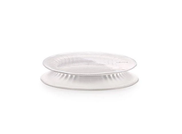 Le fond de l’assiette est quadrillé pour que le pain se décolle facilement après la cuisson.