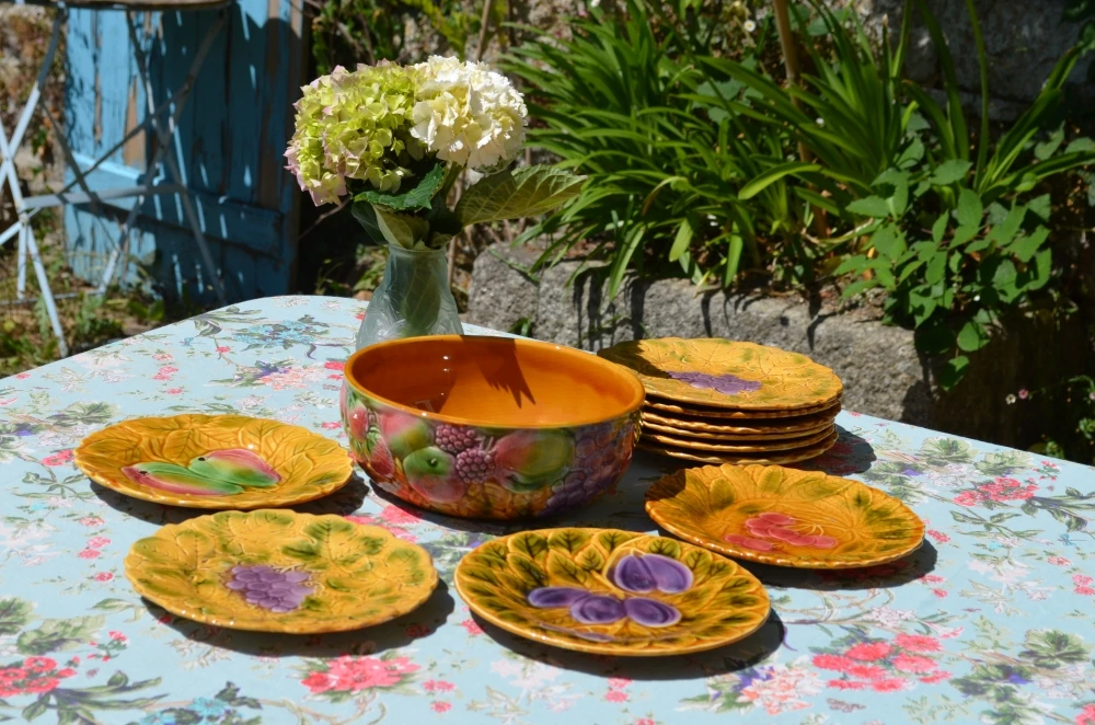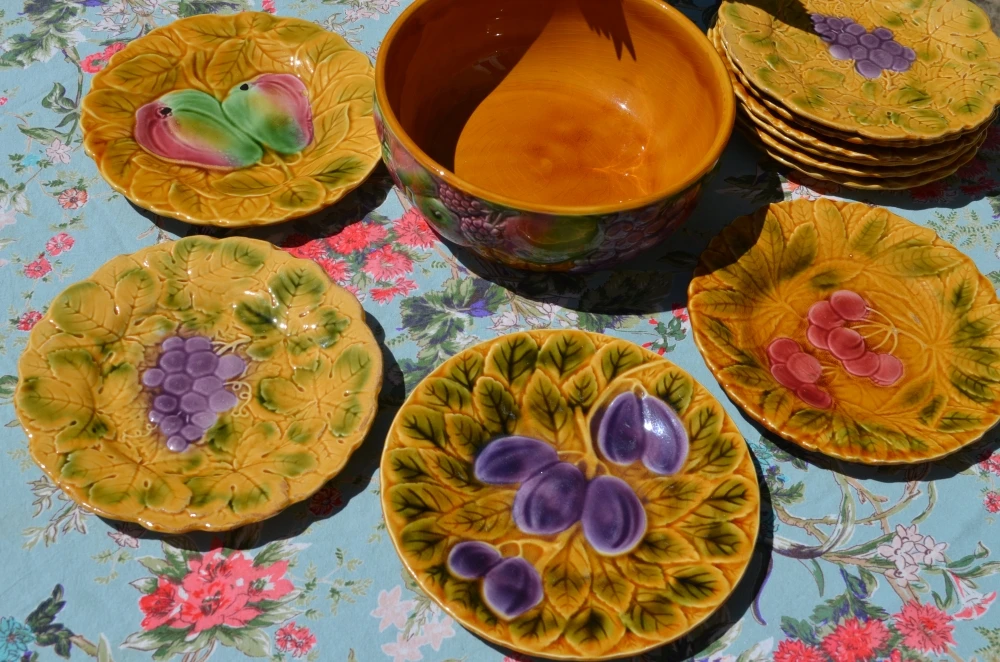 Service à dessert en barbotine de la Manufacture Sarreguemines.