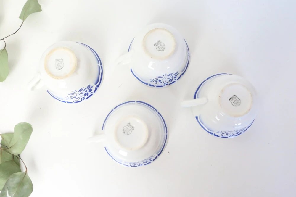 Voici un joli set de 4 tasses anciennes de la faïencerie française Céranord et éditées dans les années 50.