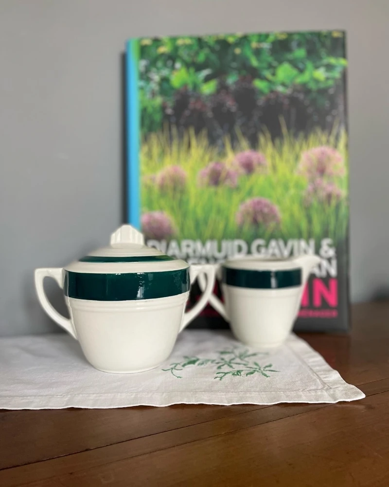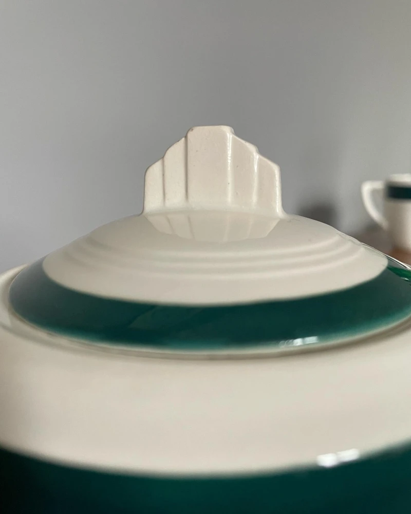 Lot De 2 DEJENEUR Faïenceries D’ORCHIES Du Nord Vert D’eau Et Doré Année 30 Thé, Café Ou Petit Cacao