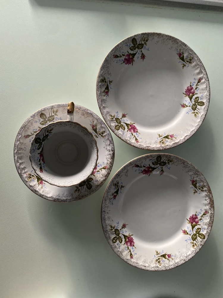 Très belle tasse à thé avec sa soucoupe orné de fleurs avec des bords dorés. 🌹