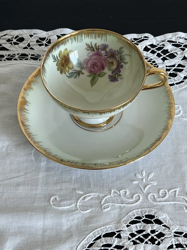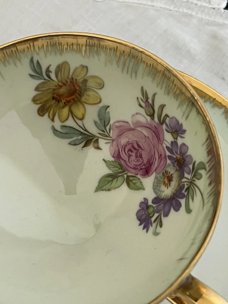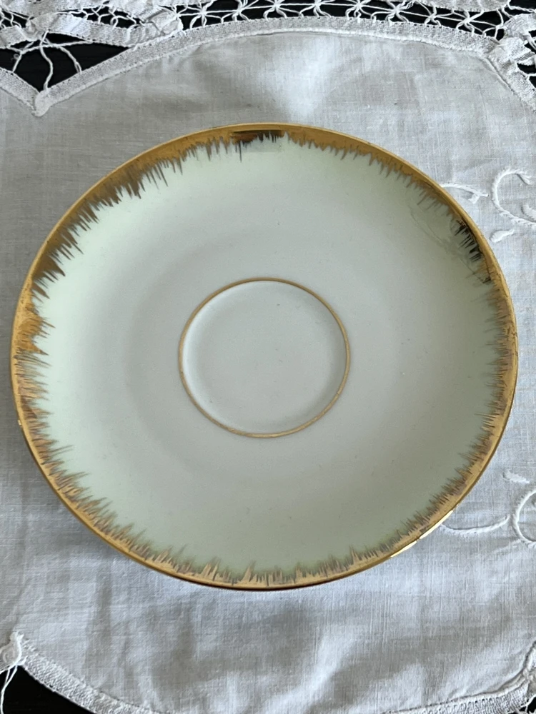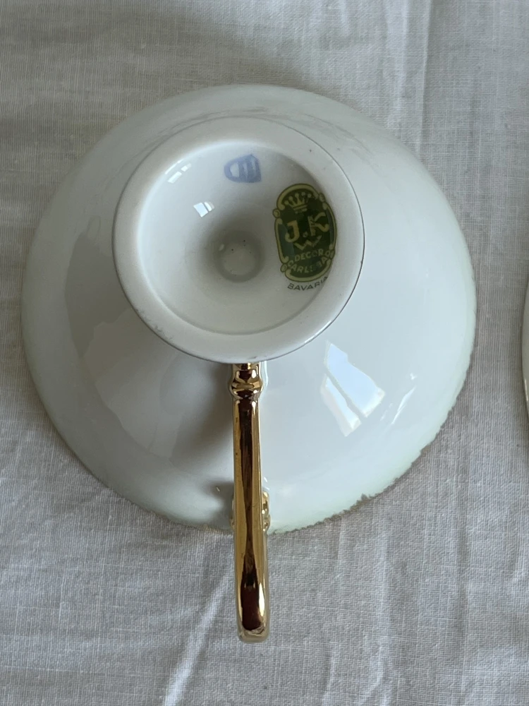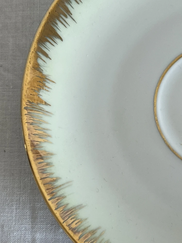 Lot De 2 DEJENEUR Faïenceries D’ORCHIES Du Nord Vert D’eau Et Doré Année 30 Thé, Café Ou Petit Cacao