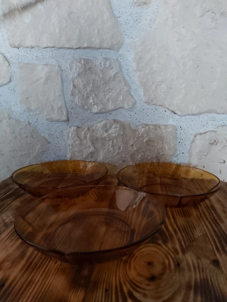 Trio de jolies assiettes creuses de la célèbre marque française Duralex.